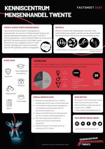 Twente werkt intensief samen in de aanpak van mensenhandel. Kenniscentrum Mensenhandel Twente voert regie op deze samenwerking en werkt voor én met de 14 Twentse gemeenten. In deze factsheet blikken we terug op het jaar 2023.
